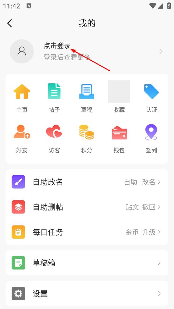 2、在“我的”頁面,點(diǎn)擊“點(diǎn)擊登錄”選項(xiàng)。