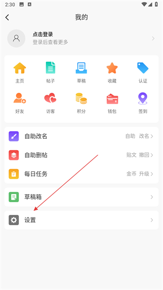 2、進(jìn)入我的頁面后點(diǎn)擊設(shè)置選項(xiàng),進(jìn)入設(shè)置頁面。