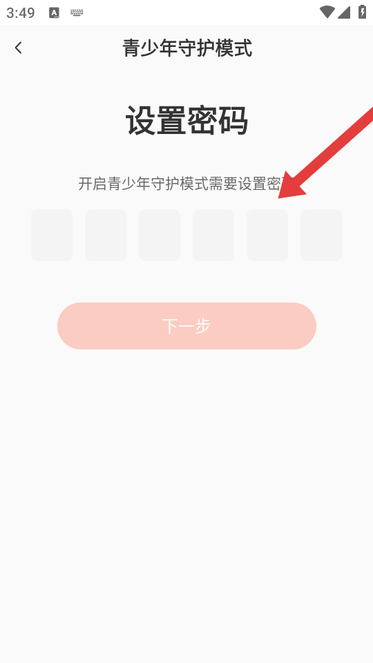 3、在設(shè)置密碼頁面,輸入要設(shè)置的密碼,即可開啟青少年模式,該模式會對內(nèi)容等進行規(guī)范。
