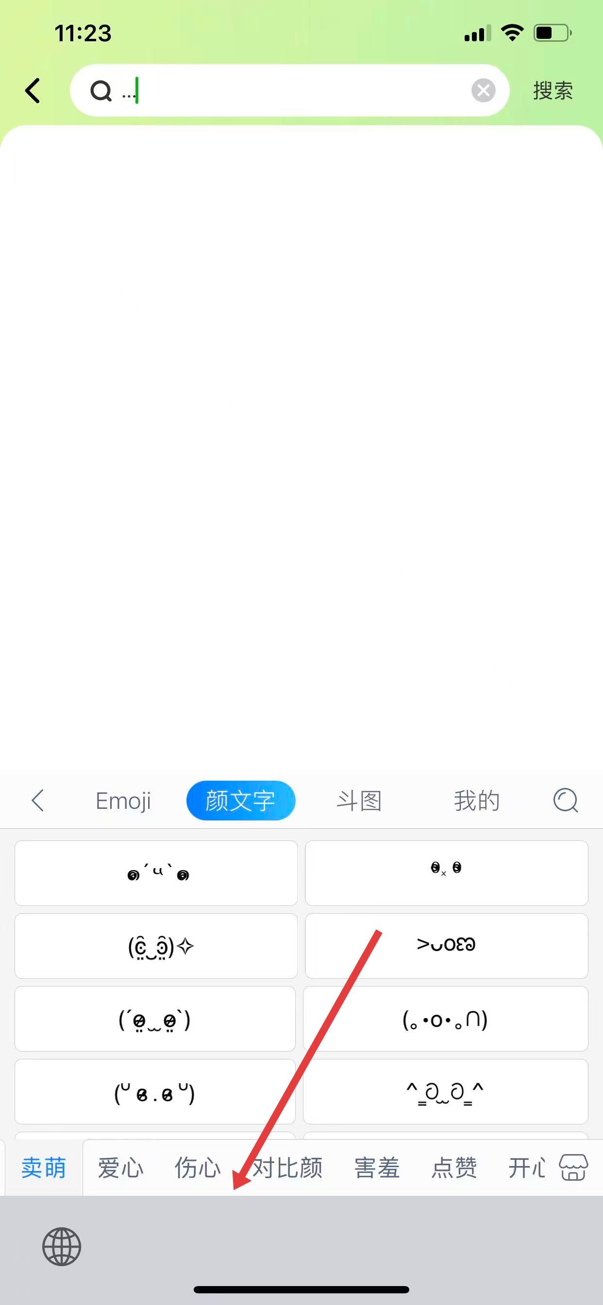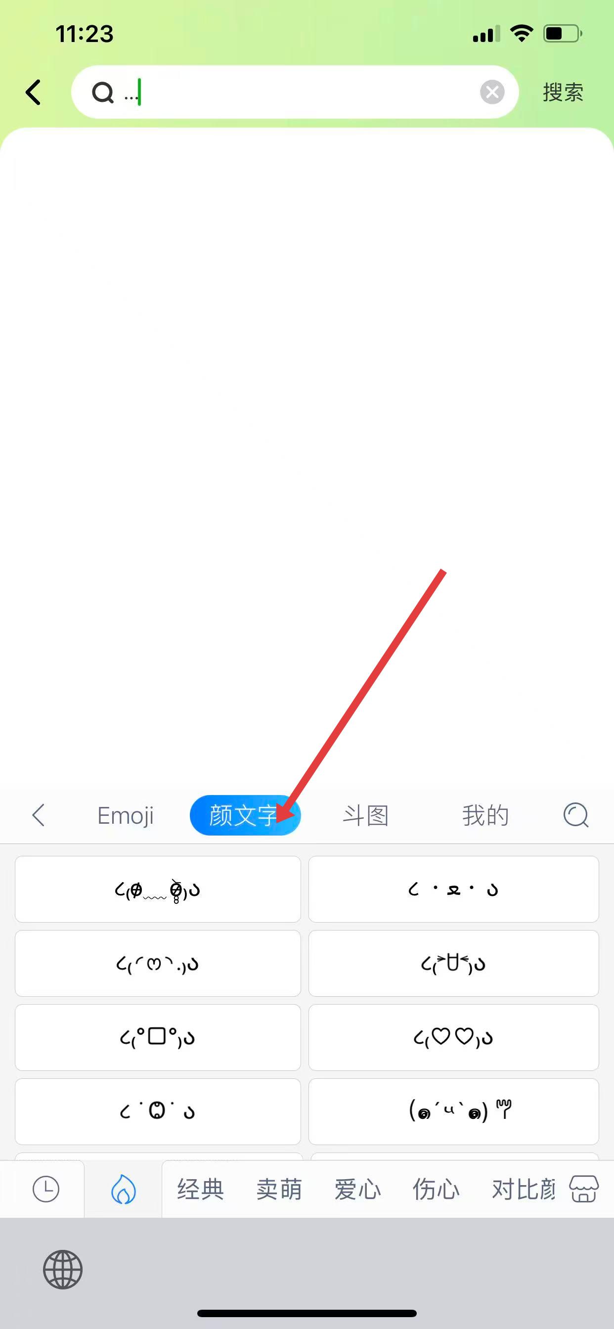 2、進(jìn)入表情界面后,點(diǎn)擊頂部的顏文字選項(xiàng)卡,即可查看各種分類的顏文字。