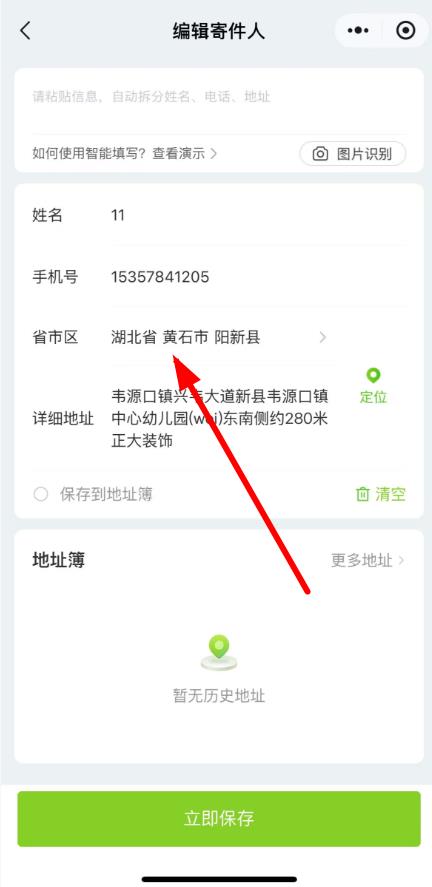 2、進入編輯寄件人頁面,填寫姓名、手機號、省市區(qū)及詳細地址等寄件人信息,點擊立即保存。