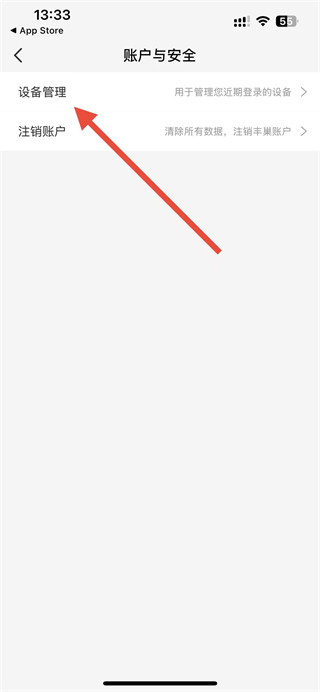 3、在賬戶與安全頁面點擊設備管理選項,進入設備與管理頁面。