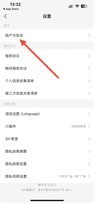 2、在設置頁面點擊賬戶與安全選項,進入賬戶與安全頁面。