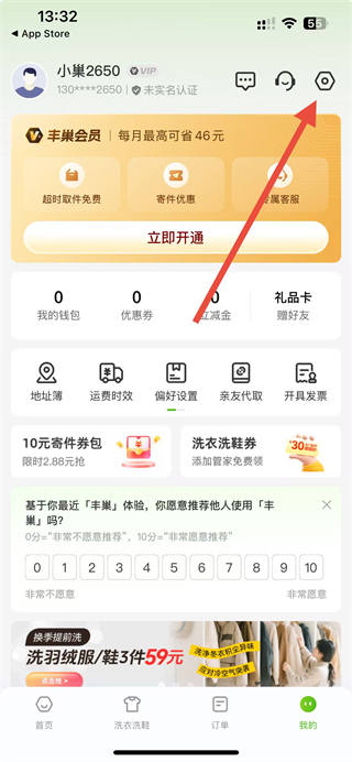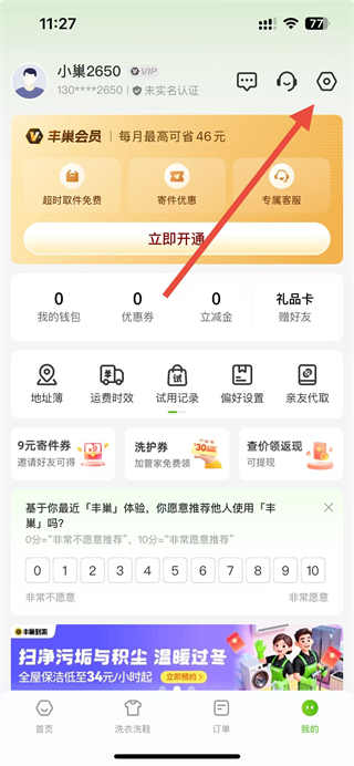 1、在豐巢app我的頁面點擊右上角設置圖標,進入設置頁面。