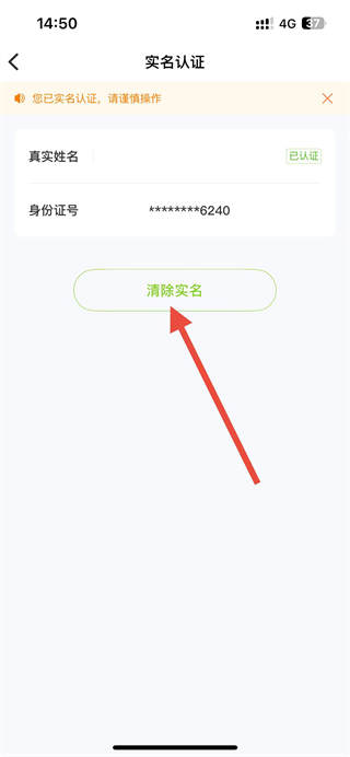 4、在實名認證頁面,點擊清除實名按鈕,按照提示完成操作即可取消實名認證。