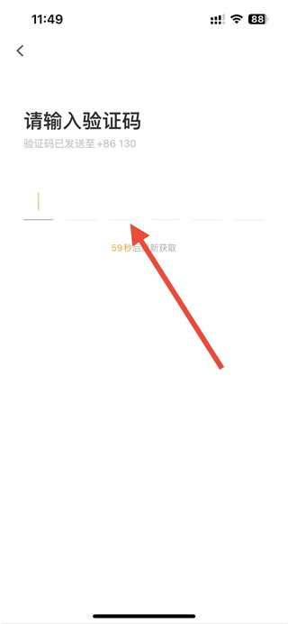 3、在驗證碼輸入頁面,輸入收到的驗證碼,完成手機號注冊賬號操作。
