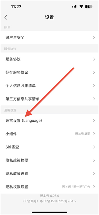3、在設置頁面,選擇語言設置選項,進入語言設置界面。