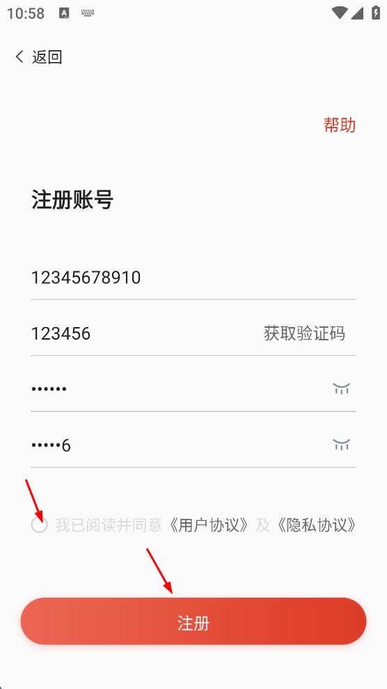 4、勾選我已閱讀并同意用戶協(xié)議及隱私協(xié)議,最后點擊“注冊”,即可完成舞蹈教考通的賬號注冊。
