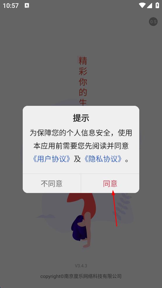 1、打開舞蹈教考通,在彈出的提示框中,點擊“同意”,進入歡迎使用界面。