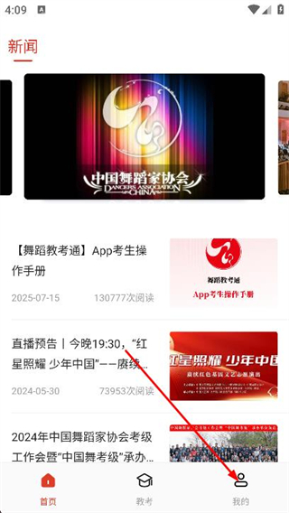 1、打開舞蹈教考通,點擊底部導航欄我的選項。
