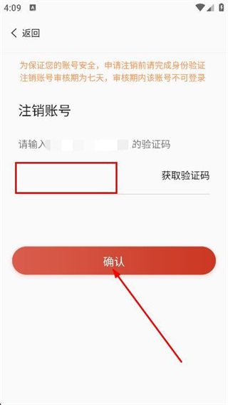 4、填寫驗證碼,點擊確認即可提交賬號注銷申請。