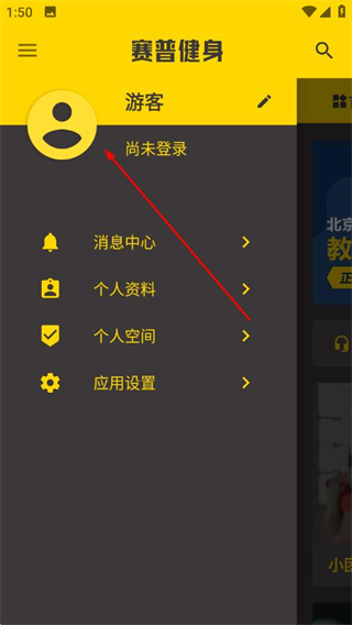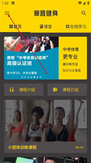 1、打開賽普健身APP,點擊左上角的三條橫線圖標。
