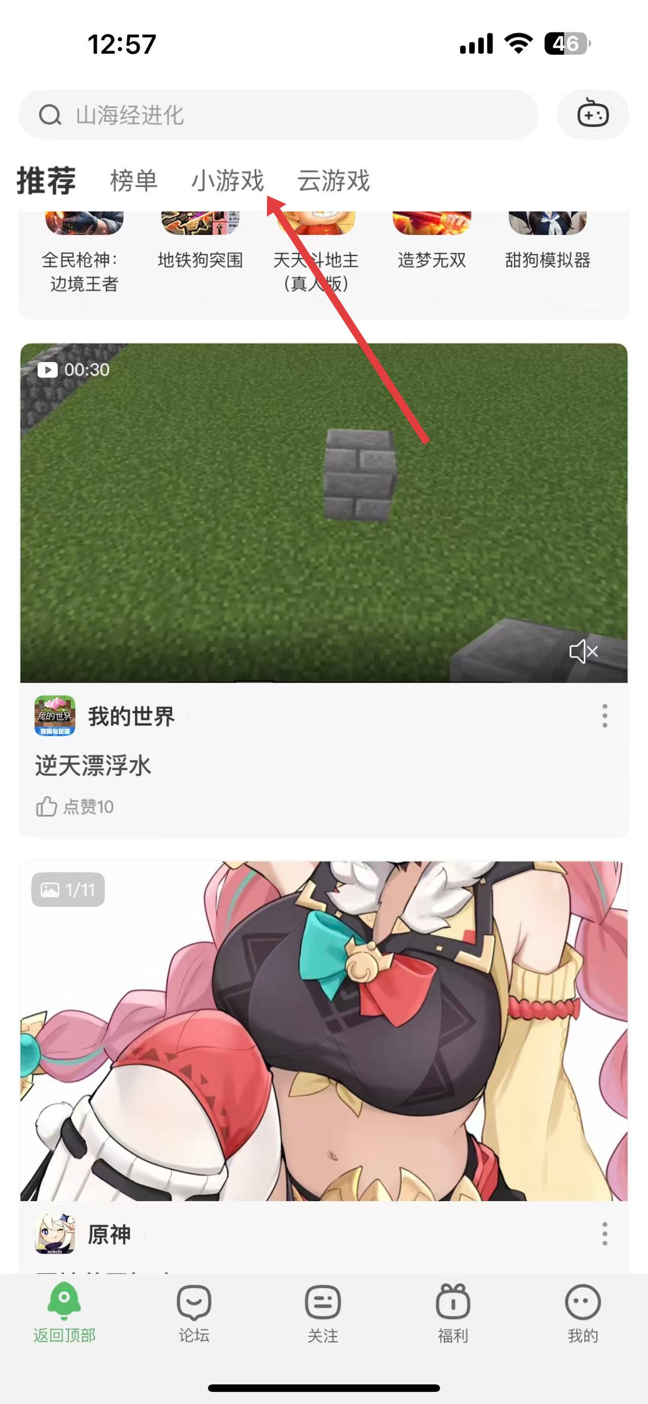 1、打開(kāi)7399游戲盒手機(jī)版,在首頁(yè)點(diǎn)擊上方的云游戲或小游戲等欄目,篩選想玩的游戲類型。