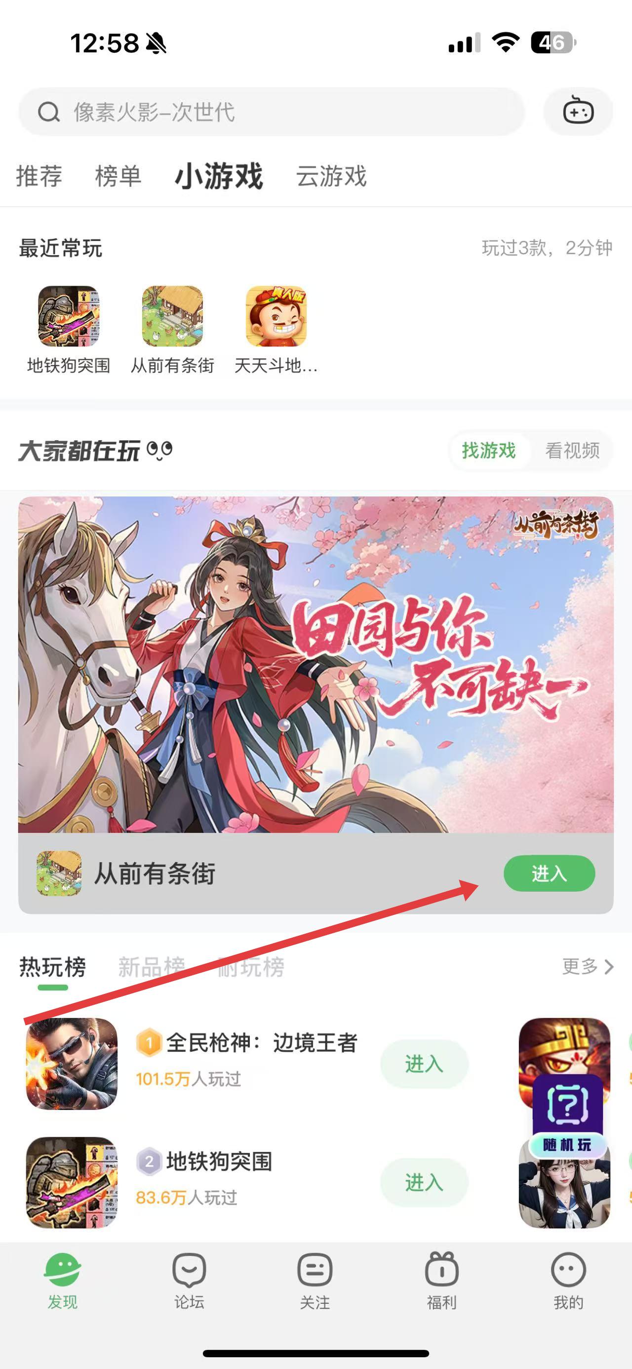 2、找到感興趣的游戲,比如在展示列表中看到從前有條街,點(diǎn)擊其對(duì)應(yīng)的進(jìn)入按鈕,加載游戲內(nèi)容。