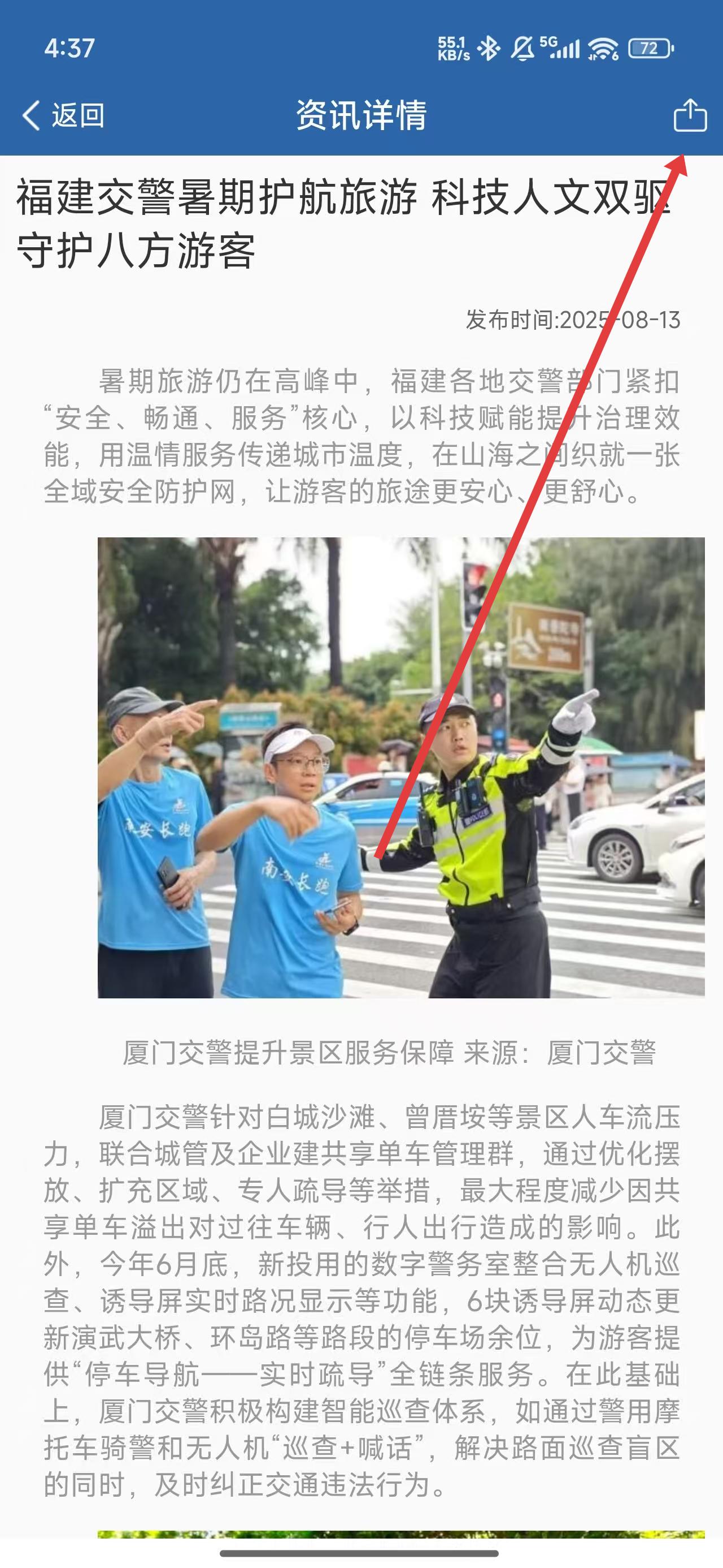 3、在資訊詳情頁面中,可以點(diǎn)擊右上方圖標(biāo)按鈕進(jìn)行上傳操作。