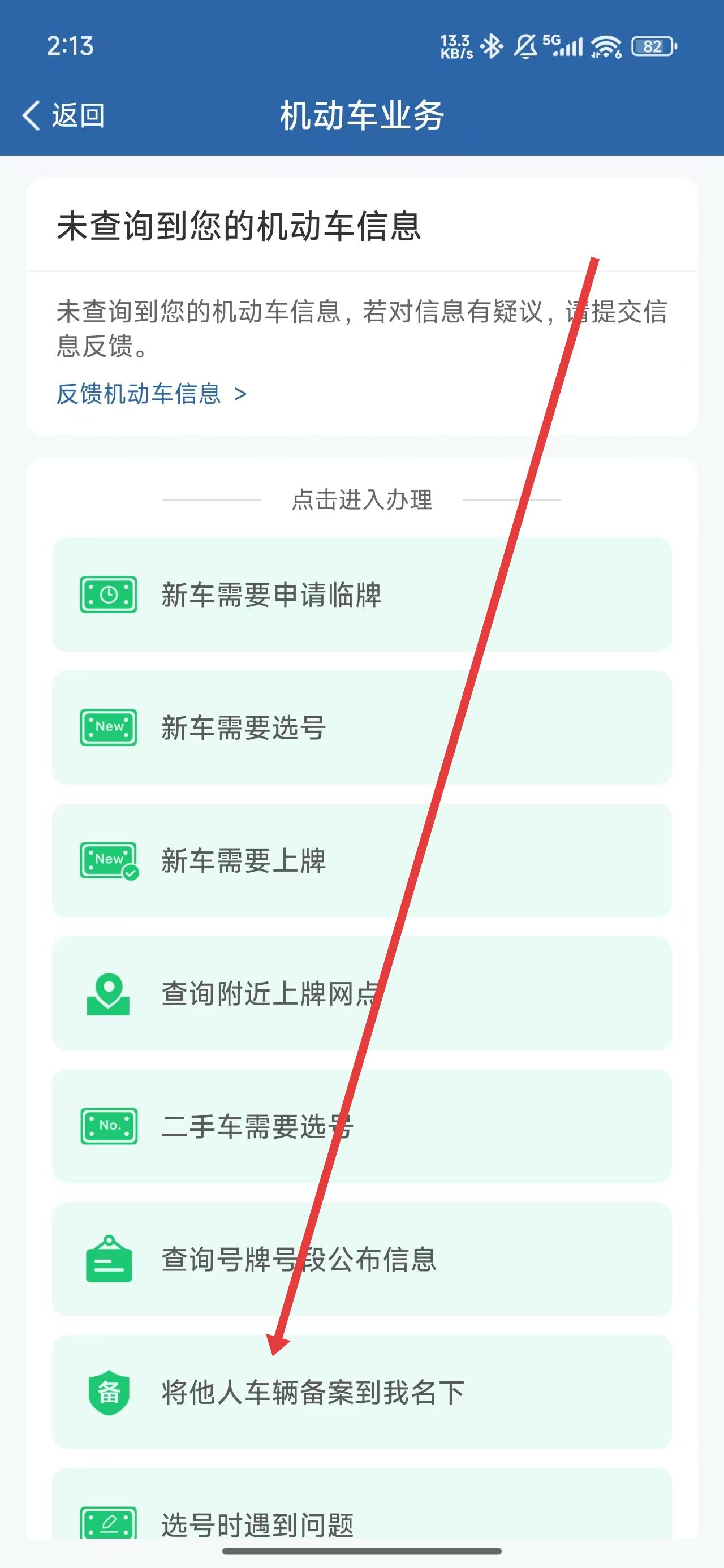 2、點(diǎn)擊箭頭指向業(yè)務(wù)選項(xiàng),進(jìn)入辦理備案他人機(jī)動(dòng)車(chē)業(yè)務(wù)。