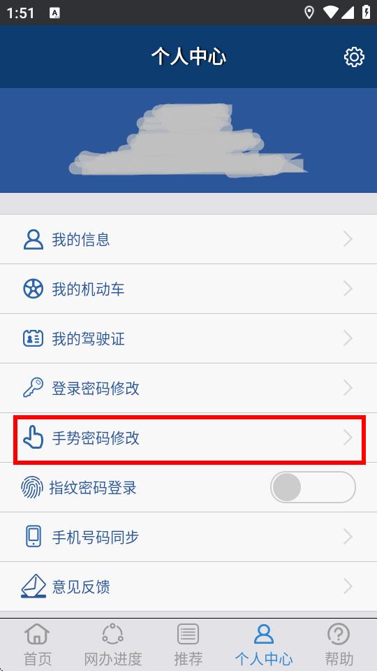 2、在個(gè)人中心頁(yè)面里,找到手勢(shì)密碼修改選項(xiàng)并點(diǎn)擊進(jìn)入。