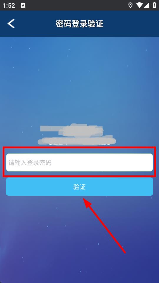 3、進(jìn)入密碼登錄驗(yàn)證界面,在輸入框中輸入登錄密碼,然后點(diǎn)擊驗(yàn)證按鈕。