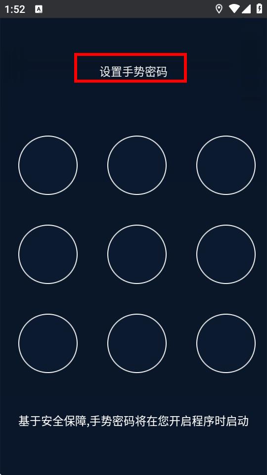 4、驗(yàn)證通過(guò)后,進(jìn)入手勢(shì)密碼設(shè)置界面,點(diǎn)擊設(shè)置手勢(shì)密碼,按照提示繪制并確認(rèn)手勢(shì)密碼即可完成設(shè)置。
