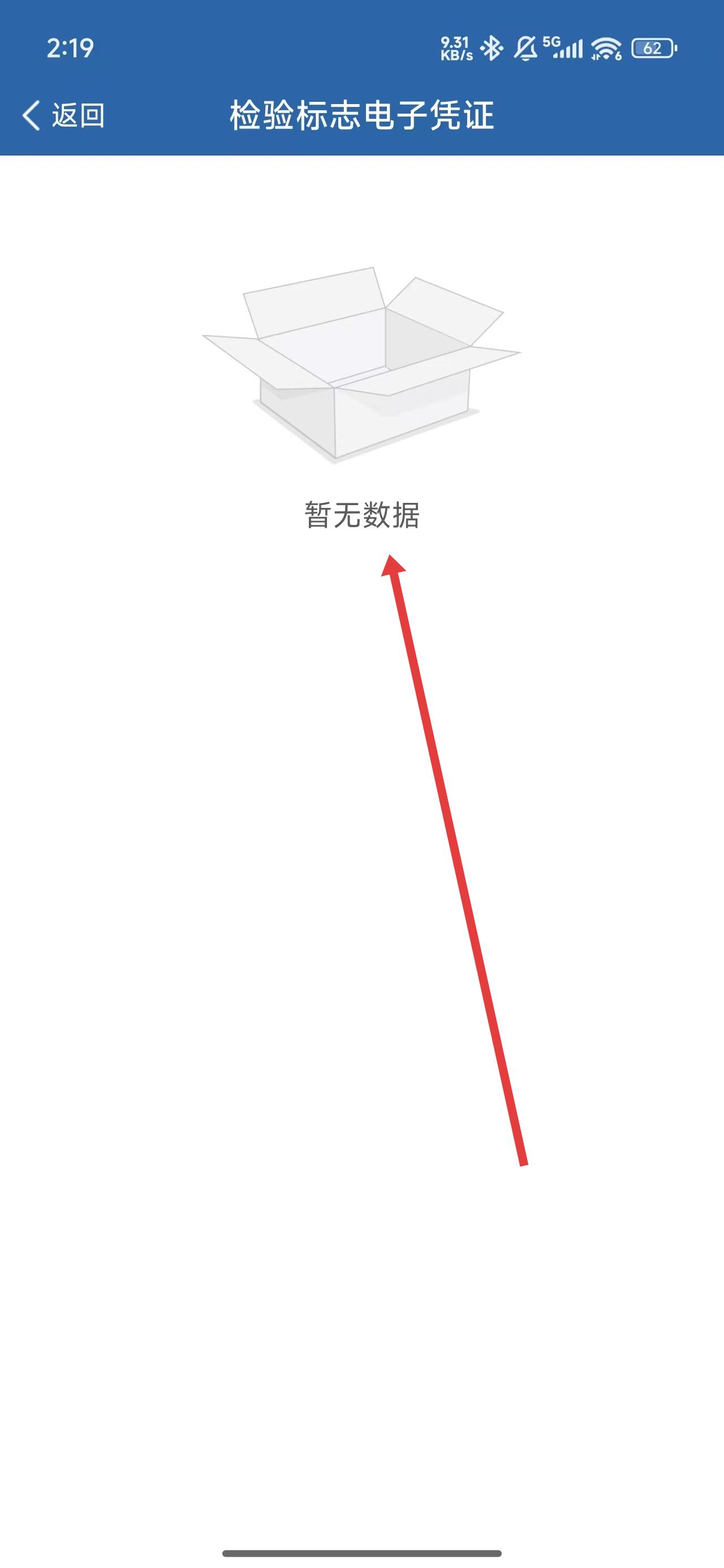 3、進(jìn)入到檢驗(yàn)標(biāo)志電子憑證頁面后,顯示當(dāng)前暫無相關(guān)電子憑證數(shù)據(jù)。