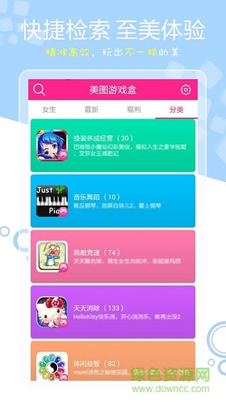 美圖游戲盒是Forgame集團(tuán)與美圖公司專為女性打造的一款輕游戲平臺,界面時尚亮麗,匯集了數(shù)百款時下最萌、最輕量級的人氣手游,涵蓋養(yǎng)成、消除、換裝等超多類型,是女性首選的私屬游樂園.