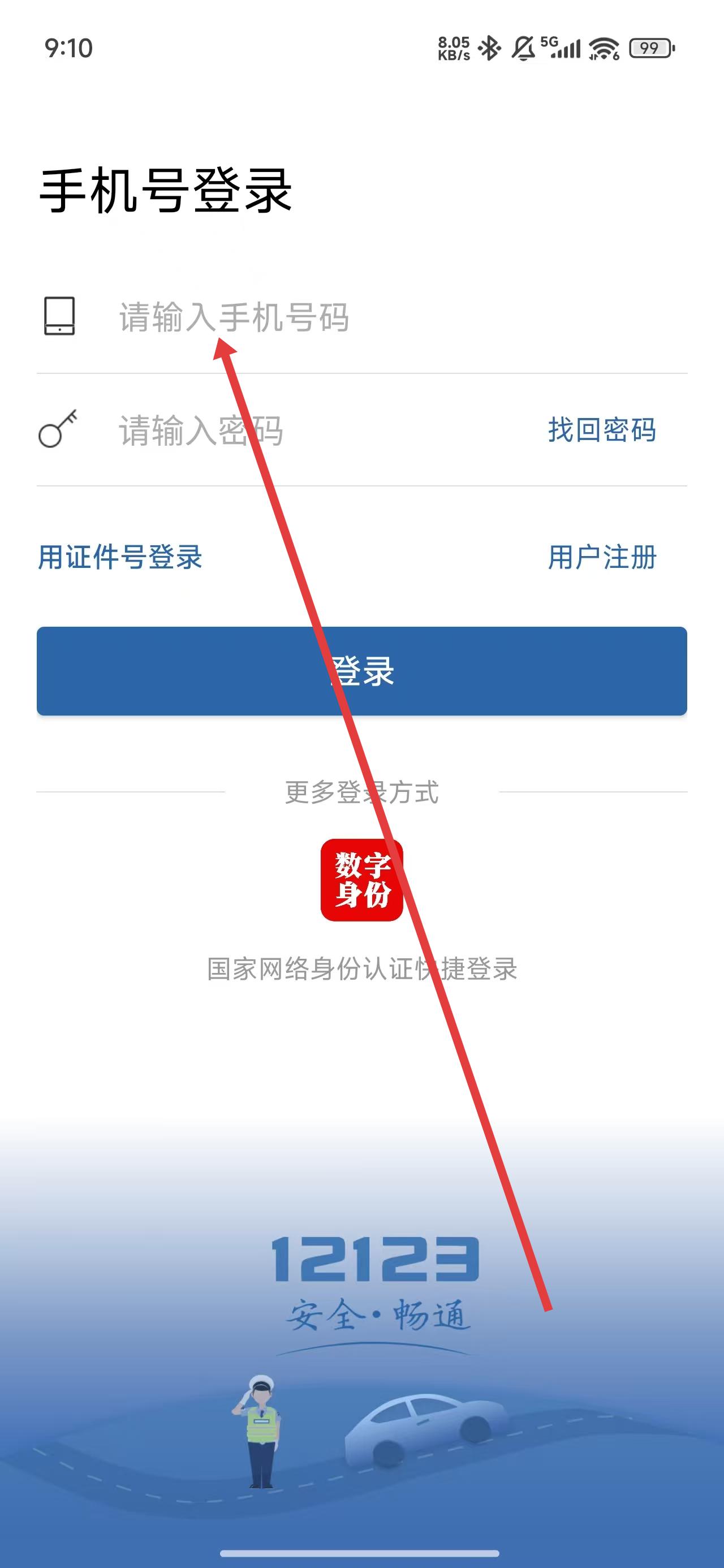 2、在進(jìn)入到登錄界面時,點擊輸入框依次輸入手機(jī)號碼和密碼后完成登錄操作。