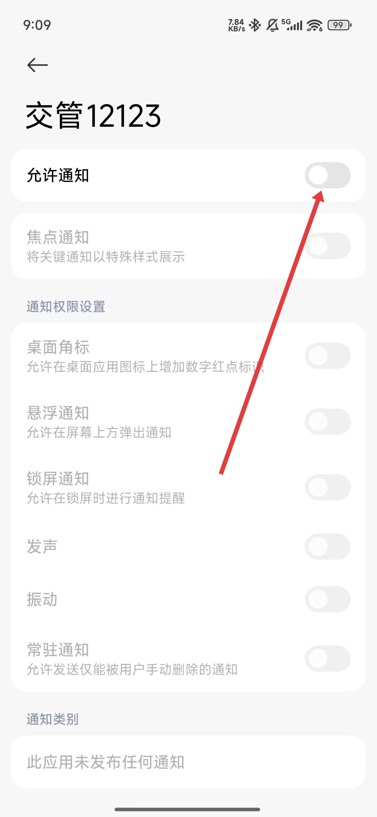 4、跳轉(zhuǎn)到設(shè)置頁面后,可以點擊允許通知右側(cè)按鈕打開消息通知。