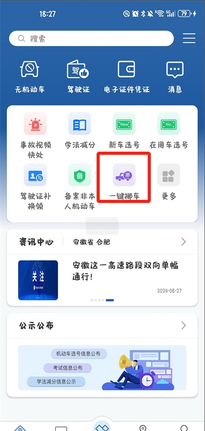 3、進(jìn)入頁(yè)面后將會(huì)看到有超多的功能可以使用,我們直接在這里找尋到一鍵挪車(chē)功能即可;