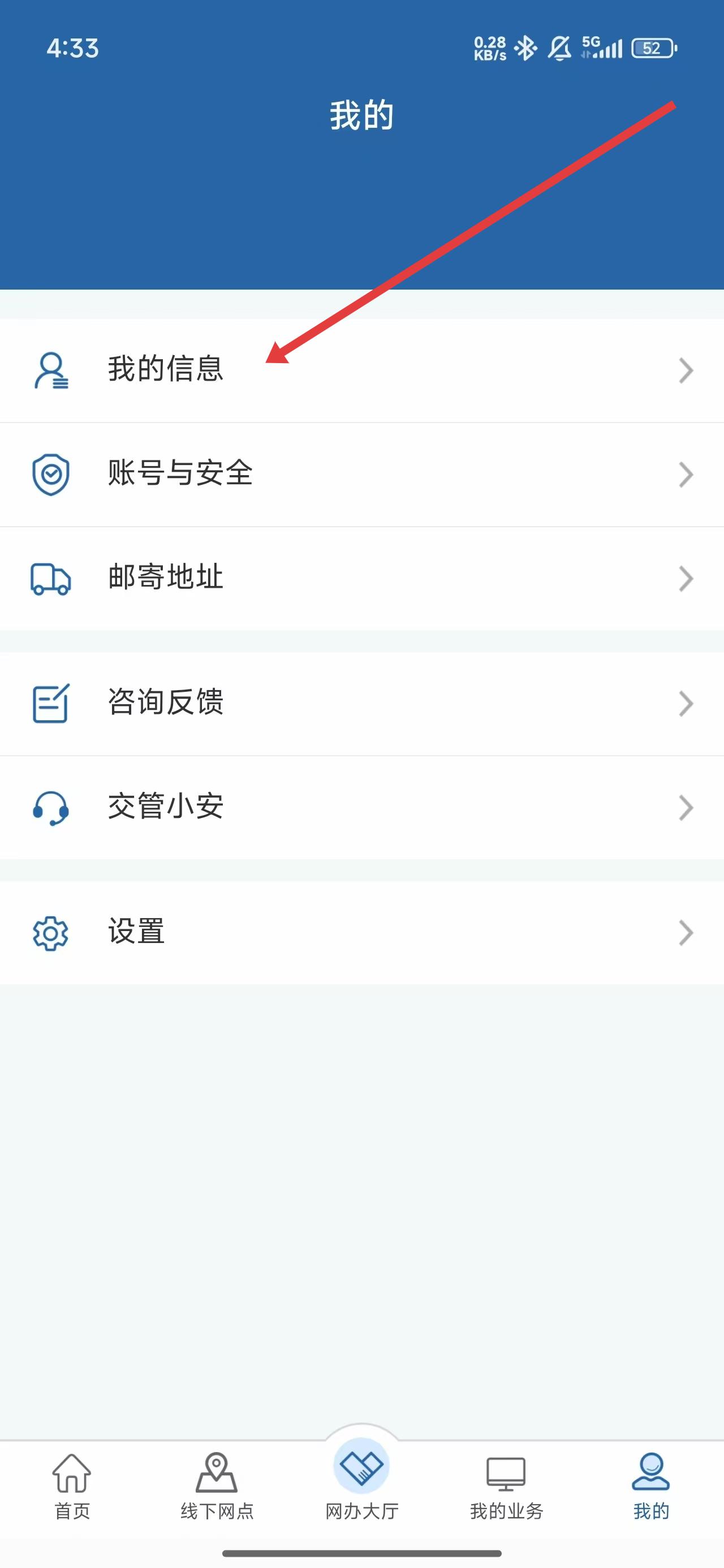 1、在進(jìn)入到我的主頁面中,可以點(diǎn)擊我的信息按鈕進(jìn)入更改信息。