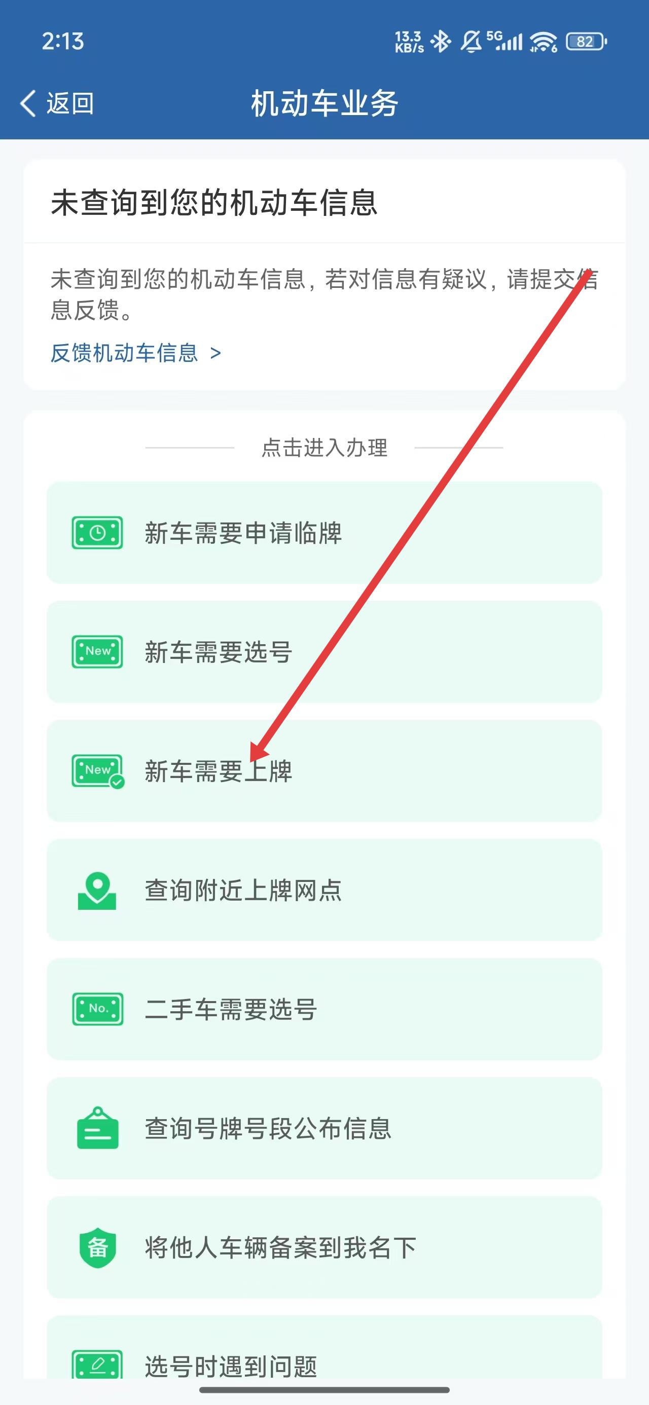 3、在進(jìn)入到機(jī)動(dòng)車業(yè)務(wù)頁(yè)面中,點(diǎn)擊新車需要上牌業(yè)務(wù)進(jìn)行辦理。