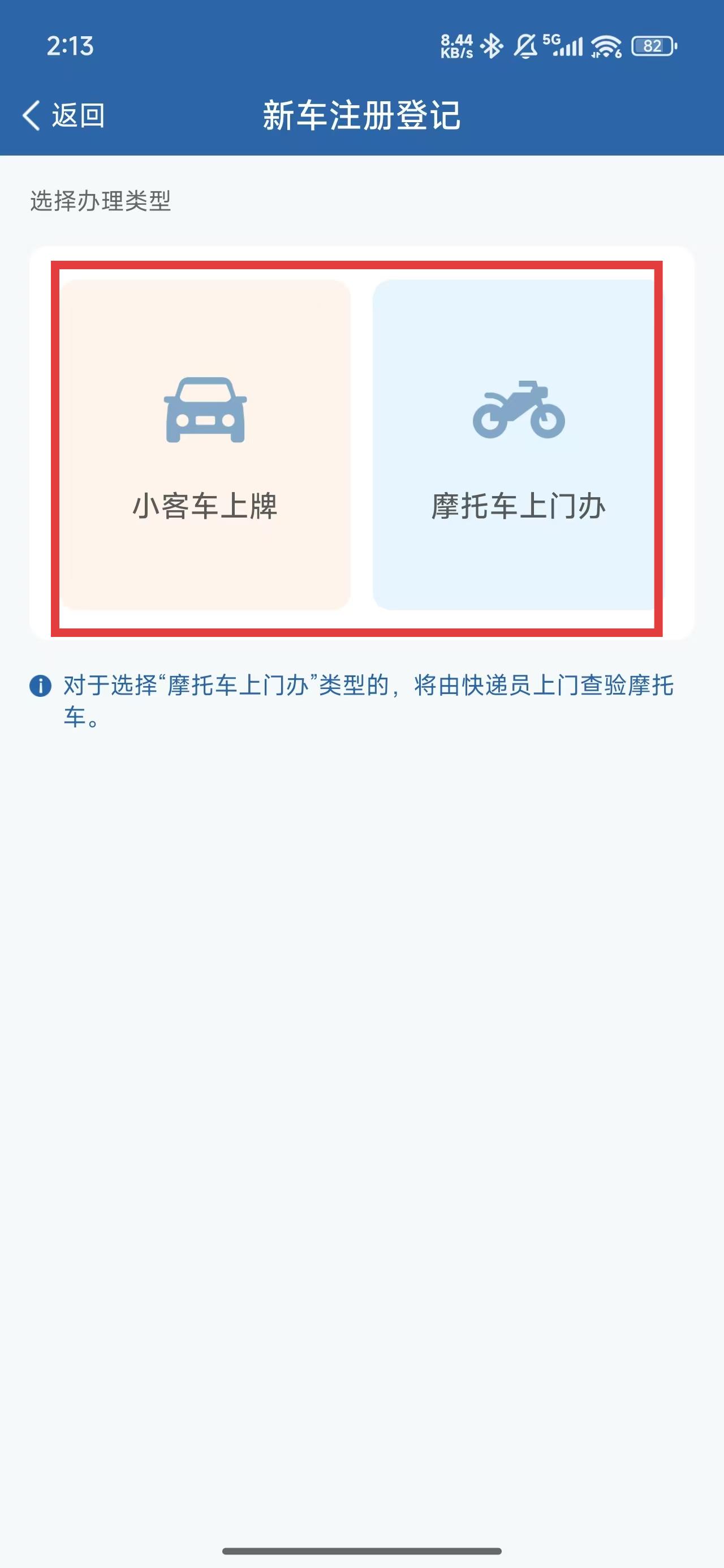 4、跳轉(zhuǎn)到新車注冊(cè)登錄頁(yè)面中,可以在下面兩種機(jī)車類型選擇登記。