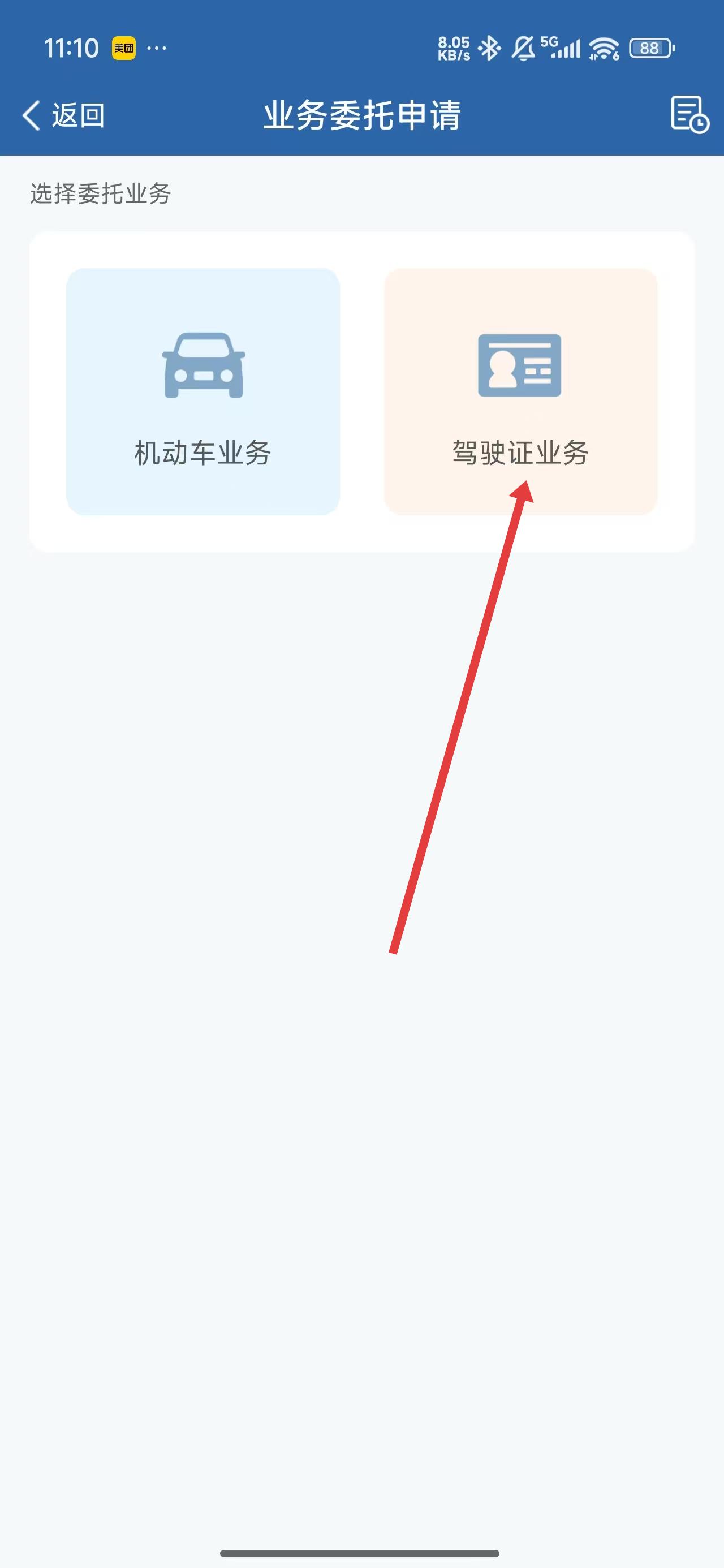 2、在進(jìn)入到業(yè)務(wù)委托申請(qǐng)頁(yè)面中,可以點(diǎn)擊駕駛證業(yè)務(wù)選項(xiàng),進(jìn)入辦理。