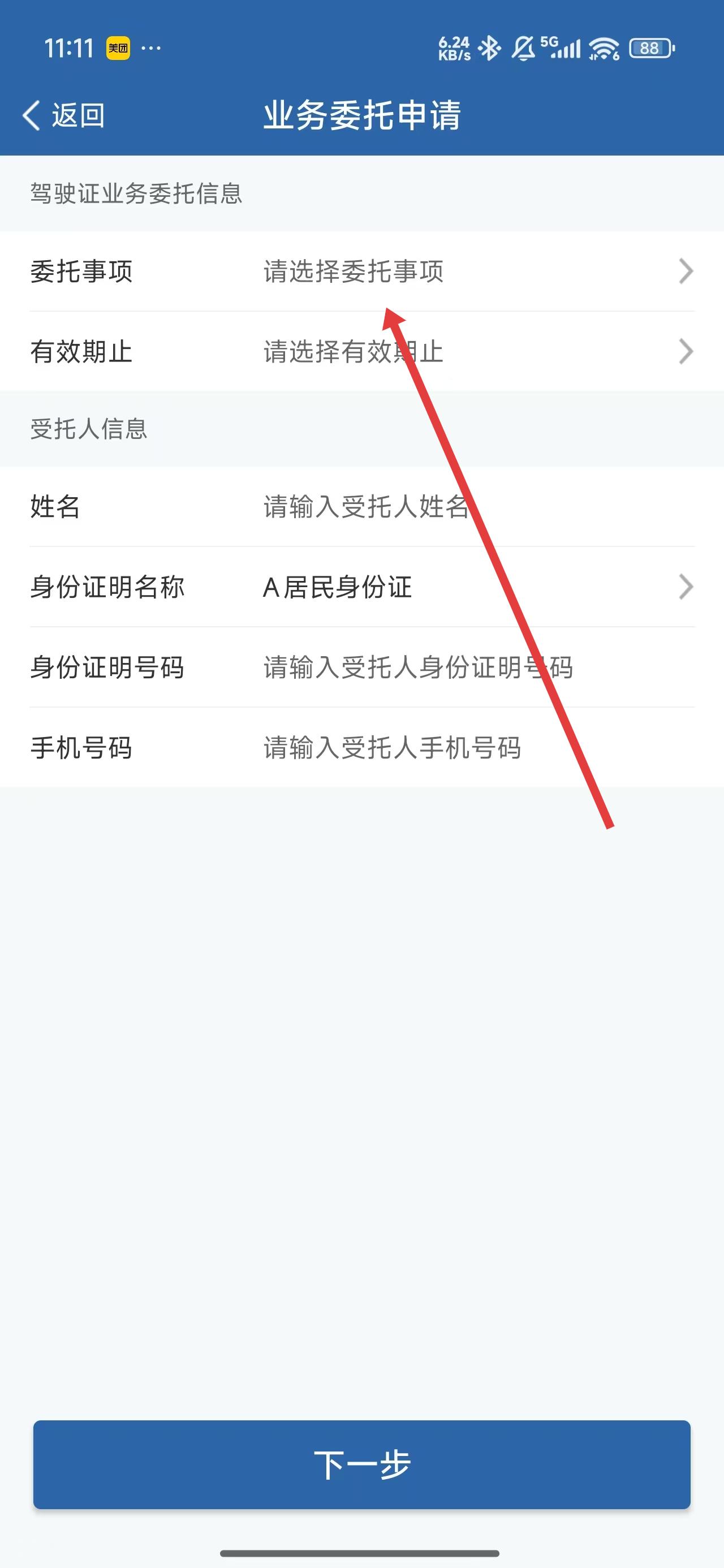 3、可以點(diǎn)擊選擇委托事項(xiàng),在依次完成相關(guān)操作后即可完成辦理。