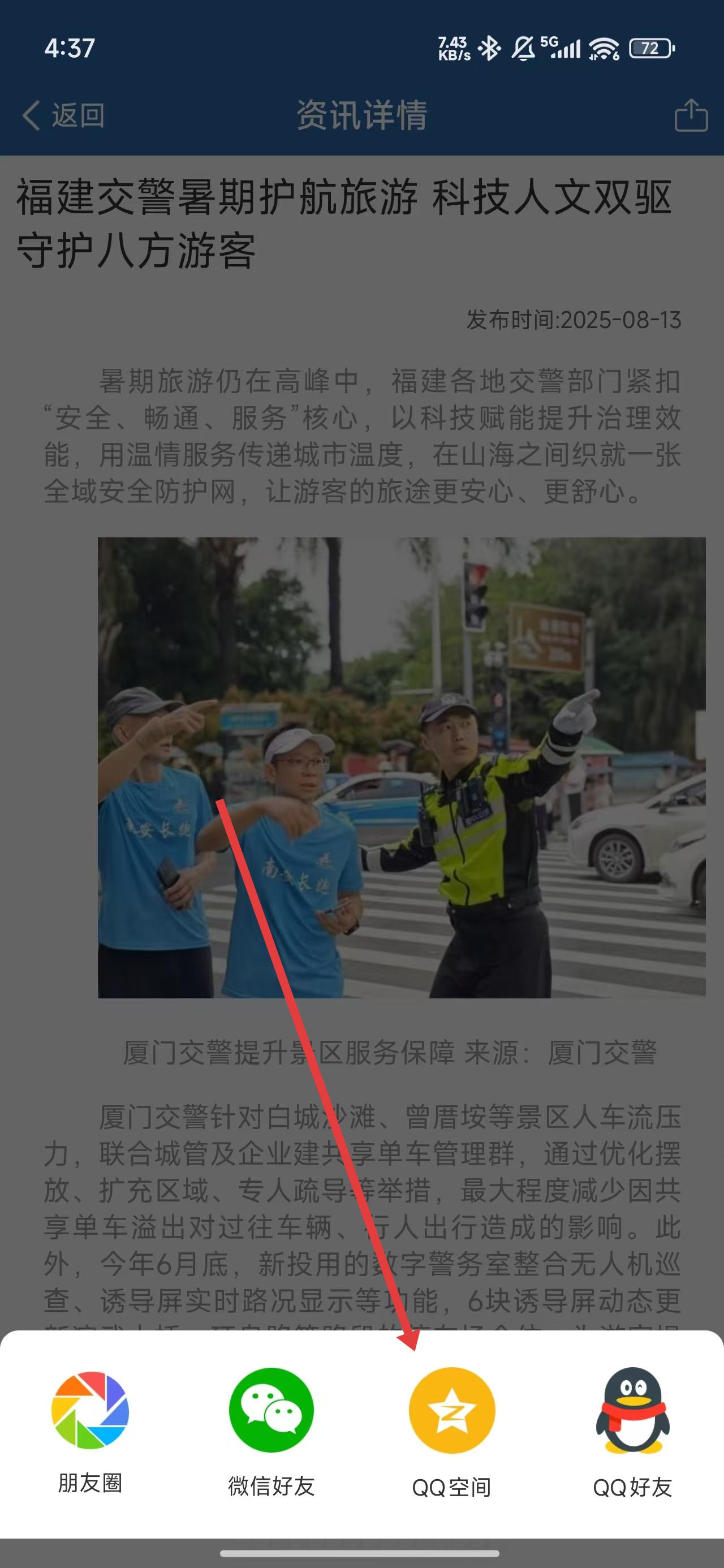 3、在資訊詳情頁面中,若想轉(zhuǎn)發(fā)分享給朋友可以點擊右上角圖標(biāo)。