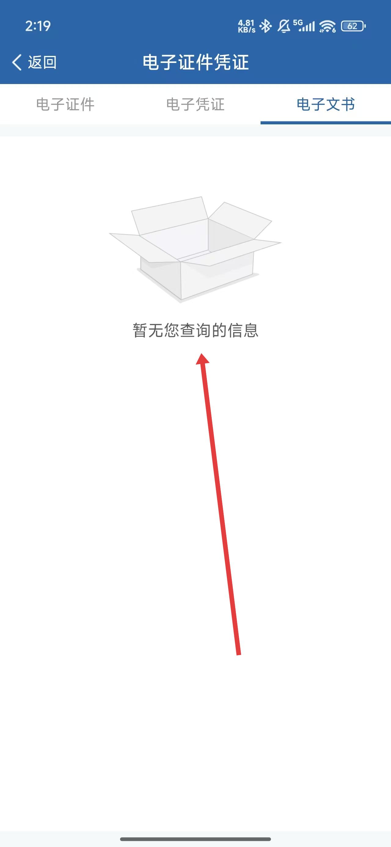 3、在進(jìn)入到電子文書(shū)模塊下,可以查看到當(dāng)前暫無(wú)查詢的信息。
