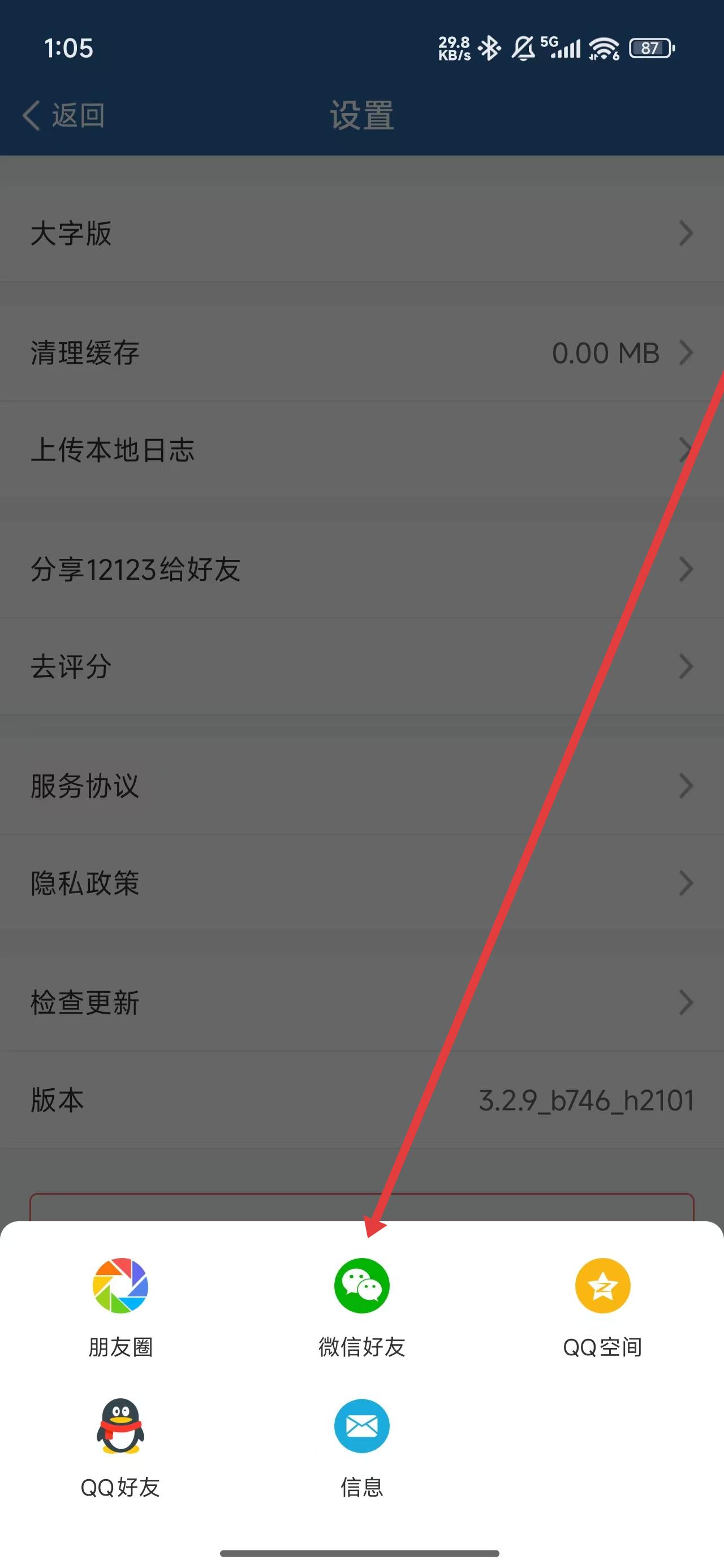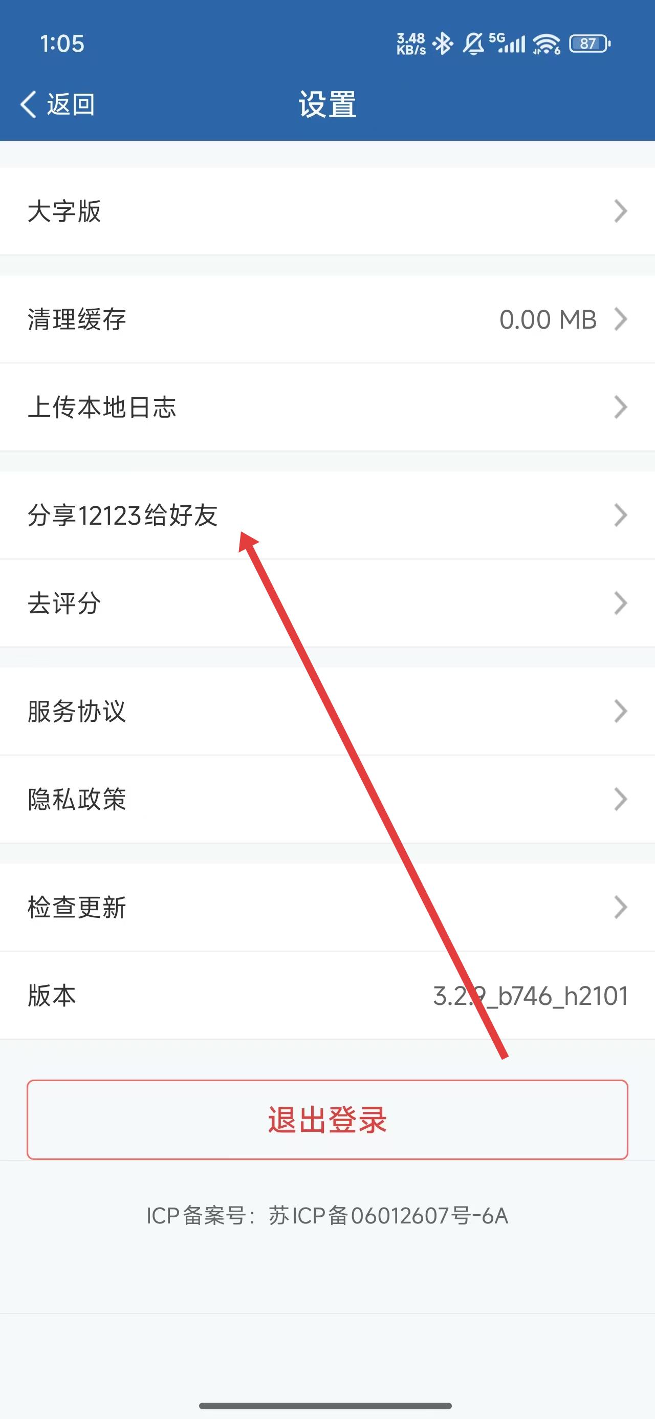3、進(jìn)入到設(shè)置頁面后,可以點擊分享12123給好友選項,進(jìn)行分享。