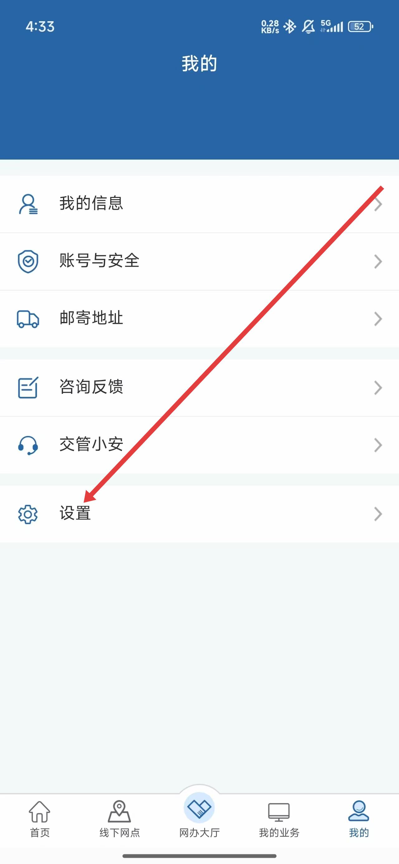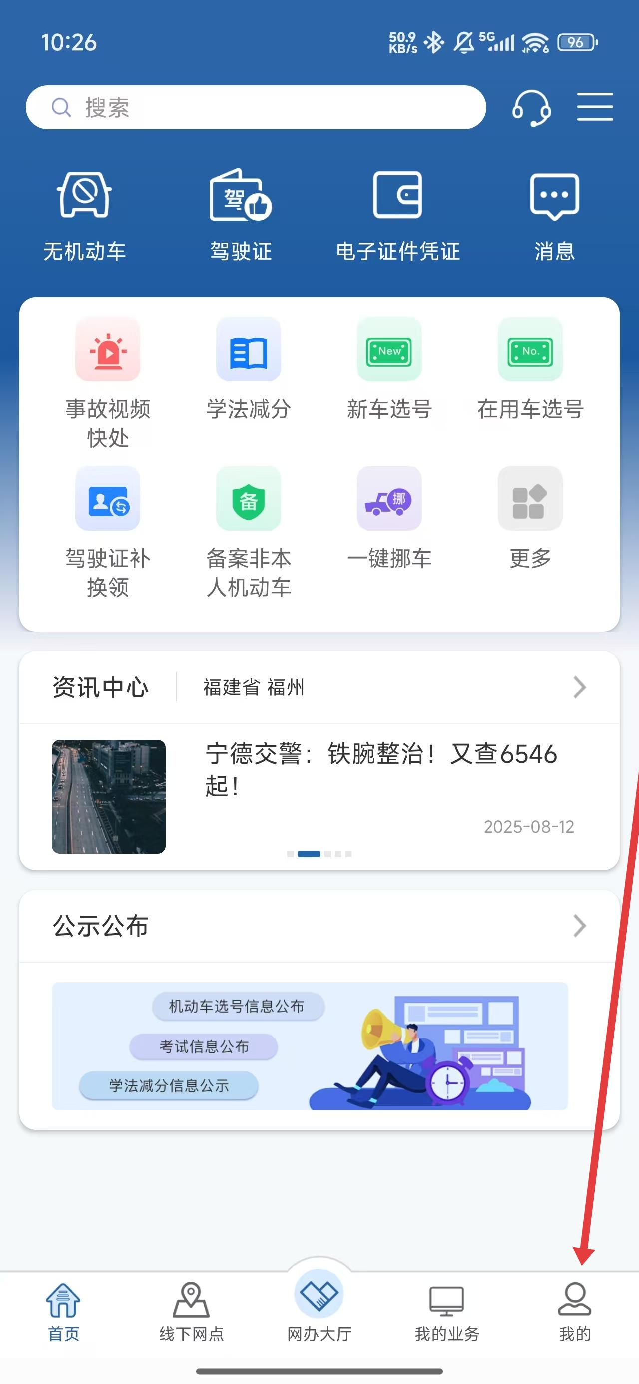 1、在交管12123主頁中,可以點擊我的按鈕,進入到我的頁面。