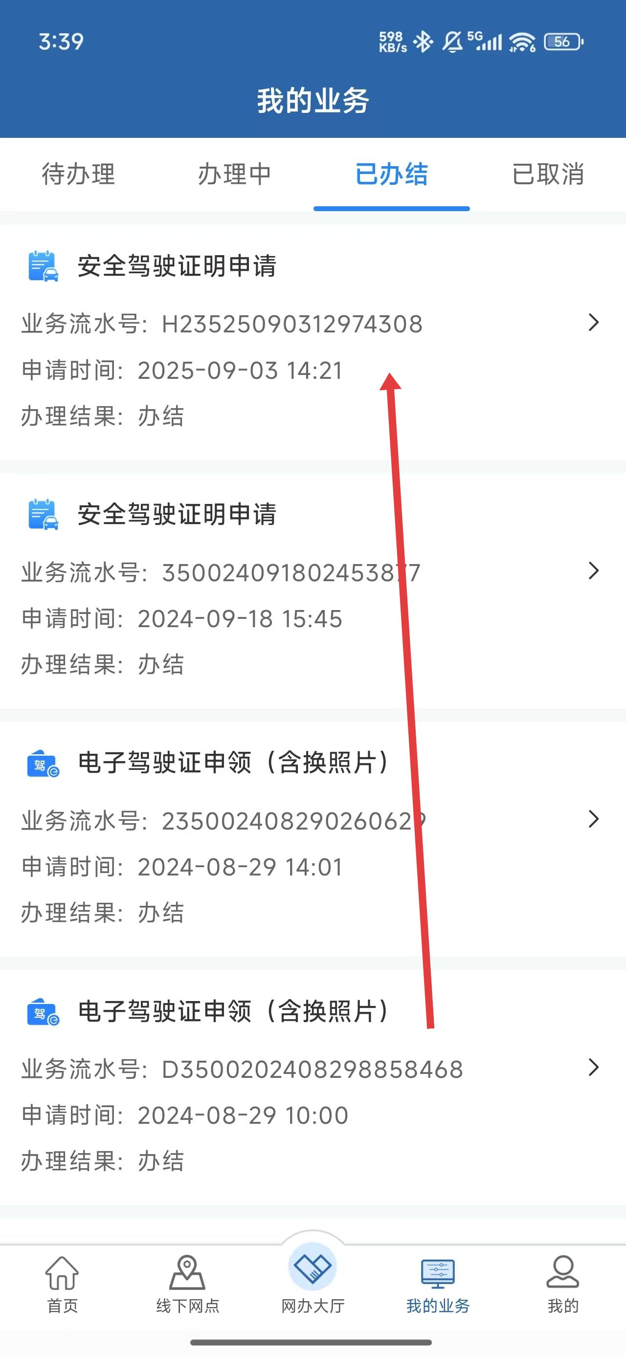 3、在已辦結(jié)頁(yè)面里,可以點(diǎn)擊業(yè)務(wù)信息,進(jìn)入查看辦理的詳情。