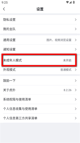3、在設(shè)置頁面,點(diǎn)擊未成年人模式選項(xiàng),進(jìn)入對應(yīng)設(shè)置界面。