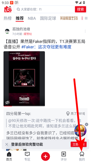 1、在虎撲首頁,點(diǎn)擊右下角我的選項(xiàng),進(jìn)入個人界面。