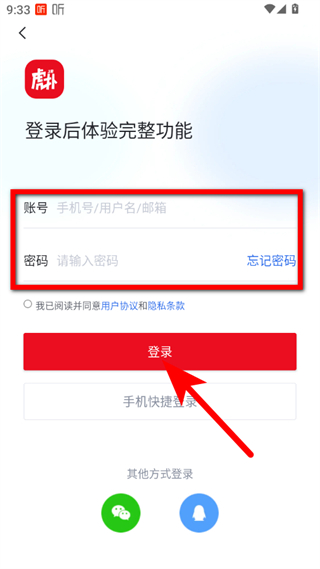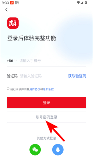 3、在登錄界面,點(diǎn)擊賬號密碼登錄選項(xiàng),進(jìn)入密碼登錄頁面。
