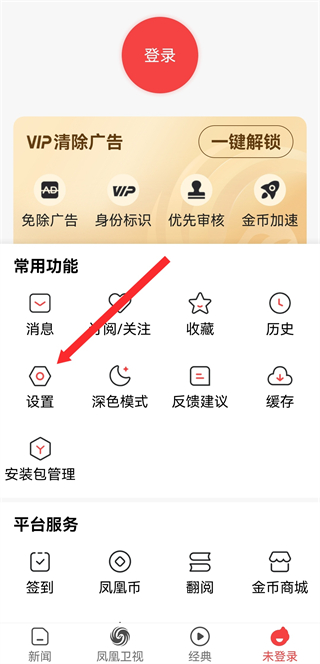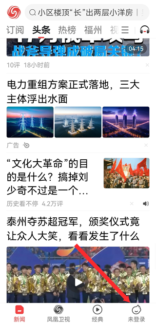 1、打開鳳凰新聞APP,點(diǎn)擊右下角未登錄,進(jìn)入個(gè)人功能頁面。