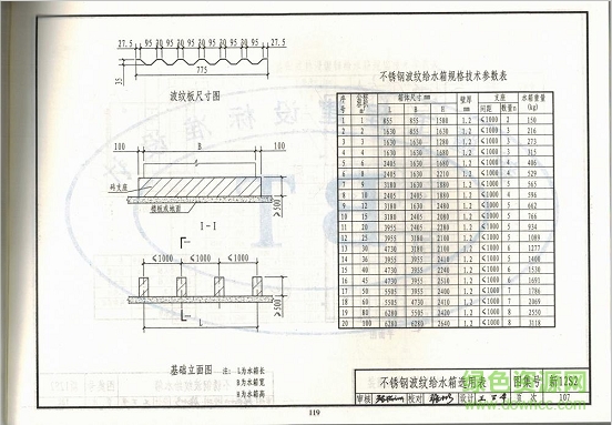 本圖集主要內(nèi)容包括:閥門井、水表井;水泵的安裝;氣壓給水、變頻給水系統(tǒng)安裝;各種材質(zhì)的水箱及其附件的安裝;二次供水系統(tǒng)的消毒設施選用和安裝;特殊閥門及其附件的選用和安裝等。本圖集中的閥門井為閘閥或截止閥井,蝶閥井可參照新12S501《室外給水管道附屬構筑物》。
