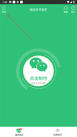 1、打開(kāi)微信多開(kāi)助手應(yīng)用,點(diǎn)擊左上角的設(shè)置按鈕。