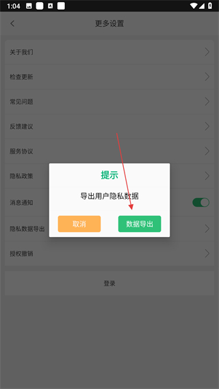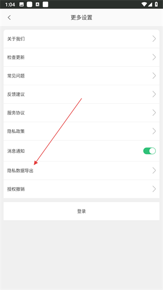3、在更多設(shè)置界面中,找到并點(diǎn)擊隱私數(shù)據(jù)導(dǎo)出選項(xiàng)。