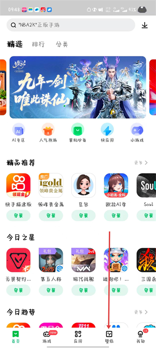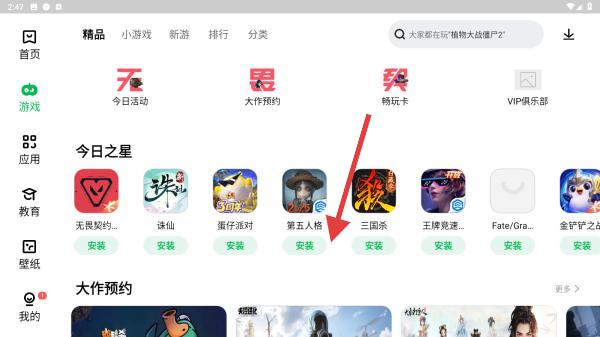 2、進入到游戲精品的頁面,在今日之星安卓游戲軟件,或從TapTap、好游快爆等可信平臺獲取安裝包。