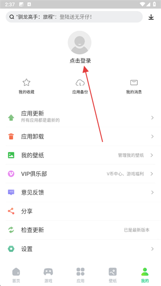 1、打開聯想樂商店APP,點擊我的頁面中的點擊登錄選項。