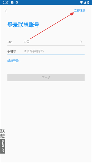 2、在登錄聯想賬號頁面點擊立即注冊,進入注冊聯想賬號頁面。