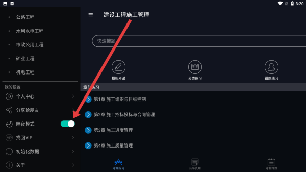 3、通過點擊暗夜模式選項旁邊的按鈕,成功開啟暗夜模式。