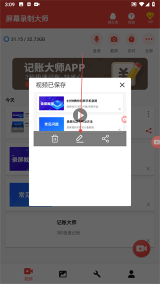 3、錄制完成的視頻會自動保存,點擊編輯圖標(biāo)進(jìn)行編輯。